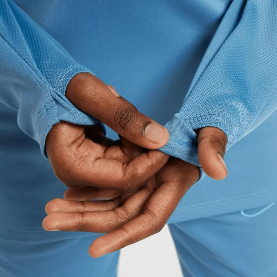 Het Nike Dri-FIT Academy23 trainingsshirt houdt uw kind warm op het veld tijdens koudere dagen. Dit trainingsshirt van Nike heeft een ritssluiting bij de nek, zodat uw kind naar wens meer warmte of koelte kan toelaten. Het materiaal is Dri-FIT, dus vochtafvoerend en sneldrogend. Daarnaast heeft dit elastische shirt duimgaten.