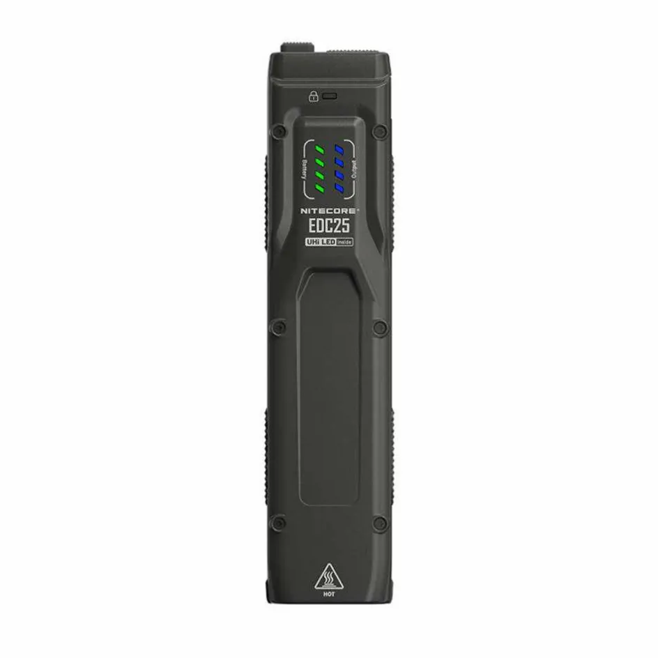 De Nitecore EDC25 zaklamp heeft een maximaal bereik van 300 meter en is oplaadbaar via de USB-C aansluiting. Het compacte formaat maakt het erg eenvoudig om de zaklamp overal mee naartoe te nemen. De groene lampjes geven het batterijniveau aan, terwijl de blauwe lampjes aangeven hoe sterk de zaklamp schijnt. De behuizing is IP54 spatwaterdicht en stofvrij. Daarnaast kunt u de clip eenvoudig vastmaken aan uw broek, waardoor u de zaklamp niet kwijtraakt.