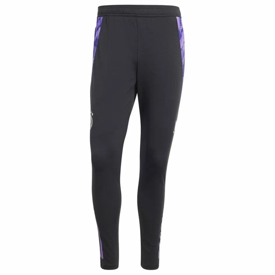 De adidas Duitsland Tiro 24 Competition trainingsbroek voor heren is een nauwsluitend model met ritsen bij de enkels. In de elastische tailleband is een trekkoord geplaatst. Er zijn twee voorzakken geplaatst met ritsen. De AEROREADY technologie zorgt ervoor dat transpiratievocht snel wordt weggevoerd van de huid, waardoor de huid droog blijft. Bij de knieholtes zijn mesh inzetstukken geplaatst voor extra ventilatie.