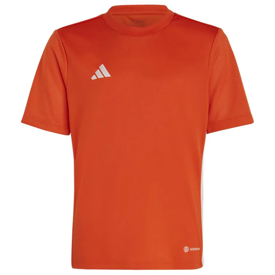 Het adidas Tabela voetbalshirt voor kinderen beschikt over vochtabsorberend AEROREADY en mesh mouwen. Hierdoor blijft het shirt comfortabel en droog, ook bij lange sportsessies. De pasvorm is normaal en het shirt is gemaakt van gerecycled polyester.
