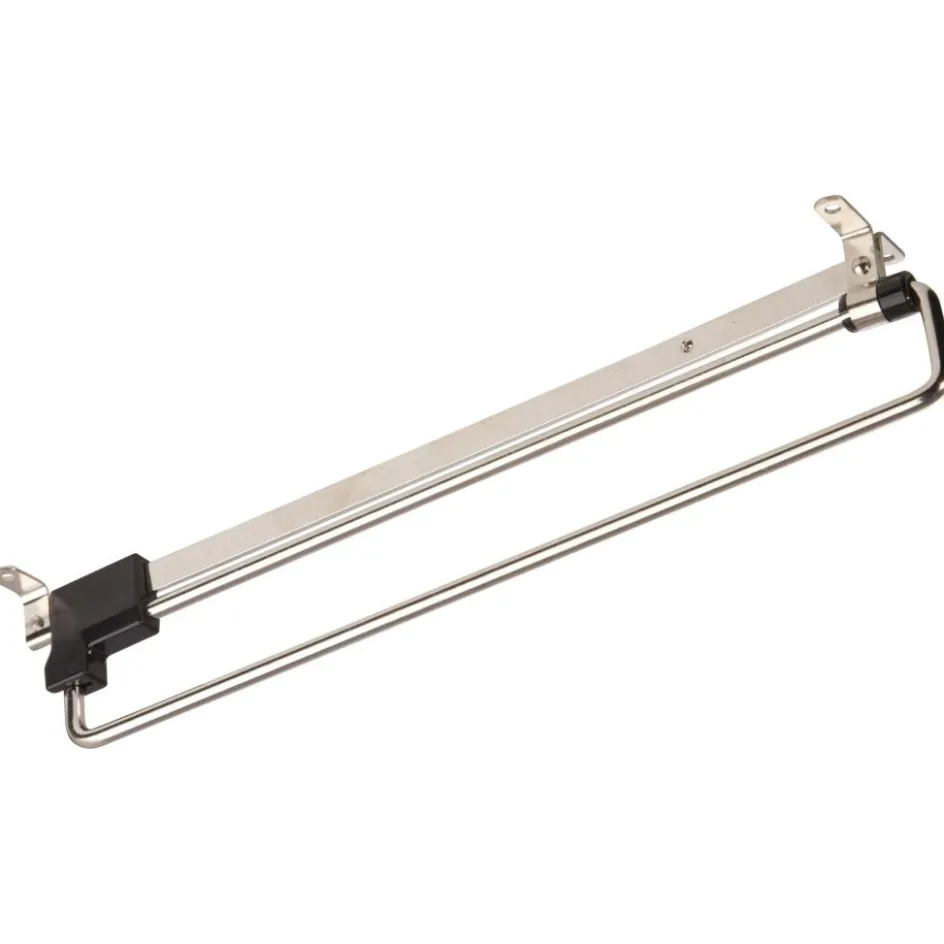 Het Uitschuifbaar Garderobe systeem van Fawo is ideaal wanneer de kast te smal is om goed de kleding te kunnen zien of pakken. Het systeem schuift gemakkelijk in en uit zodat de kleding buiten de kast komt te hangen. De geleiderail is 291 millimeter lang, het hanggedeelte is 280 millimeter. Wanneer de stang is uitgeschoven is de totale lengte 488 millimeter. Eenvoudig bovenin de kast te monteren.