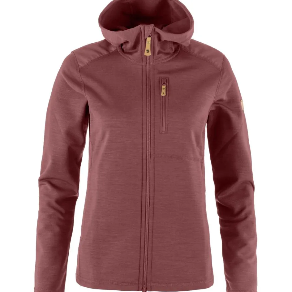 Het Fjällräven Keb Fleece Hoodie vest voor dames is gemaakt van een gebreid wolmengsel. Dit vest heeft een gladde buitenkant dat eenvoudig onder een shell-jas past. De stevige en zachte structuur aan de binnenzijde houdt u goed warm en is sneldrogend. Het vest heeft twee steekzakken en een borstzak die allemaal voorzien zijn van een ritssluiting. De zoom, manchetten en de rand van de capuchon zijn elastisch, zodat u de perfecte pasvorm heeft.