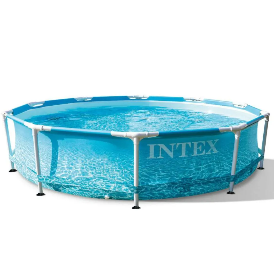 Het Intex Prism Beachside Metal Frame 305 zwembad is een rond opzetzwembad. Het ruime zwembad is snel en eenvoudig op te zetten dankzij de unieke buizenconstructie. Het bad heeft een diameter van 305 centimeter en een inhoud van 4,485 liter.