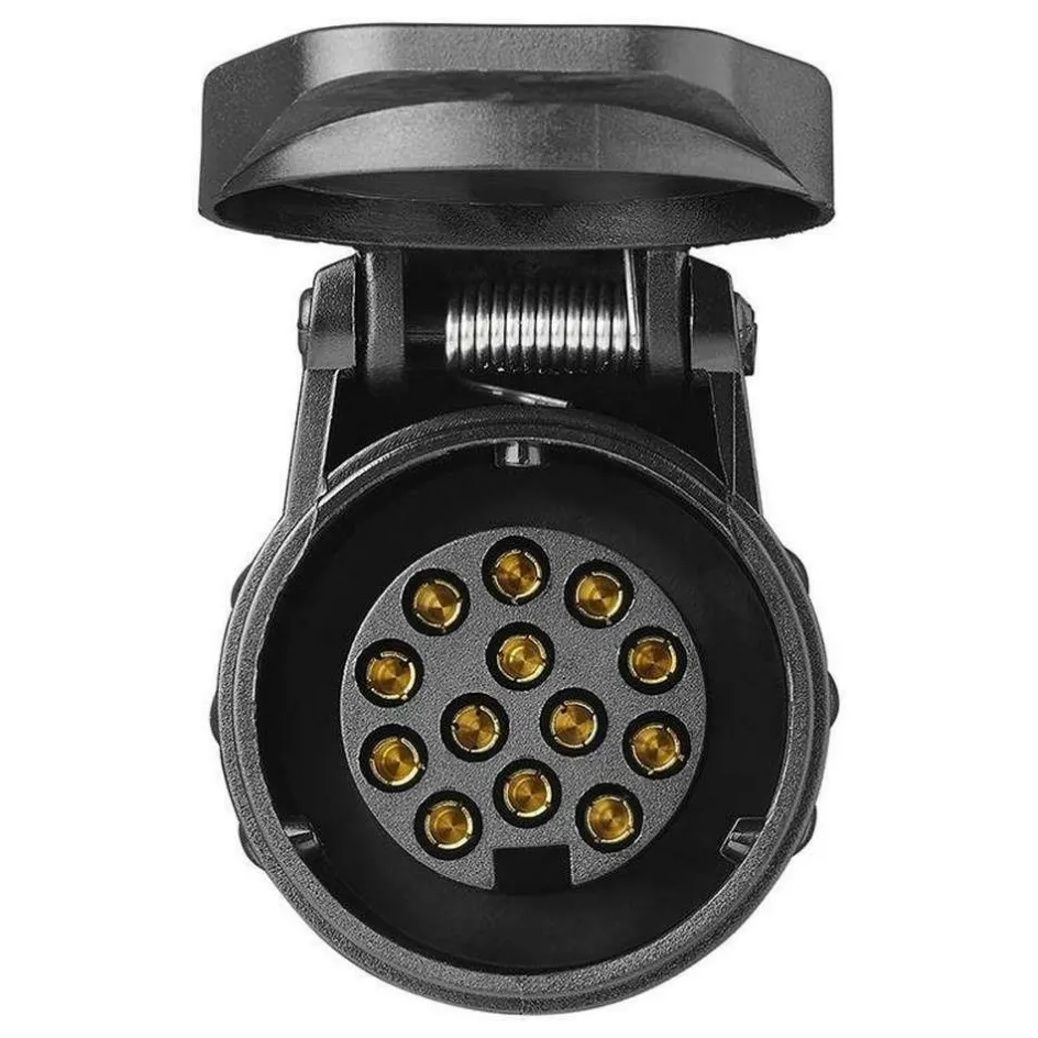 De ProPlus 13-polige Jaeger contrastekker kunt u aansluiten op een caravan, aanhanger of vouwwagen. Met de bajonetsluiting zit de stekker stevig in de contactdoos. De stekker is voorzien van alle polen om de rij-verlichting aan te sluiten, inclusief mistlampen en achteruitrijd-lampen. De stekker biedt ook de mogelijkheid om de binnenverlichting van een koelkast aan te sluiten.
