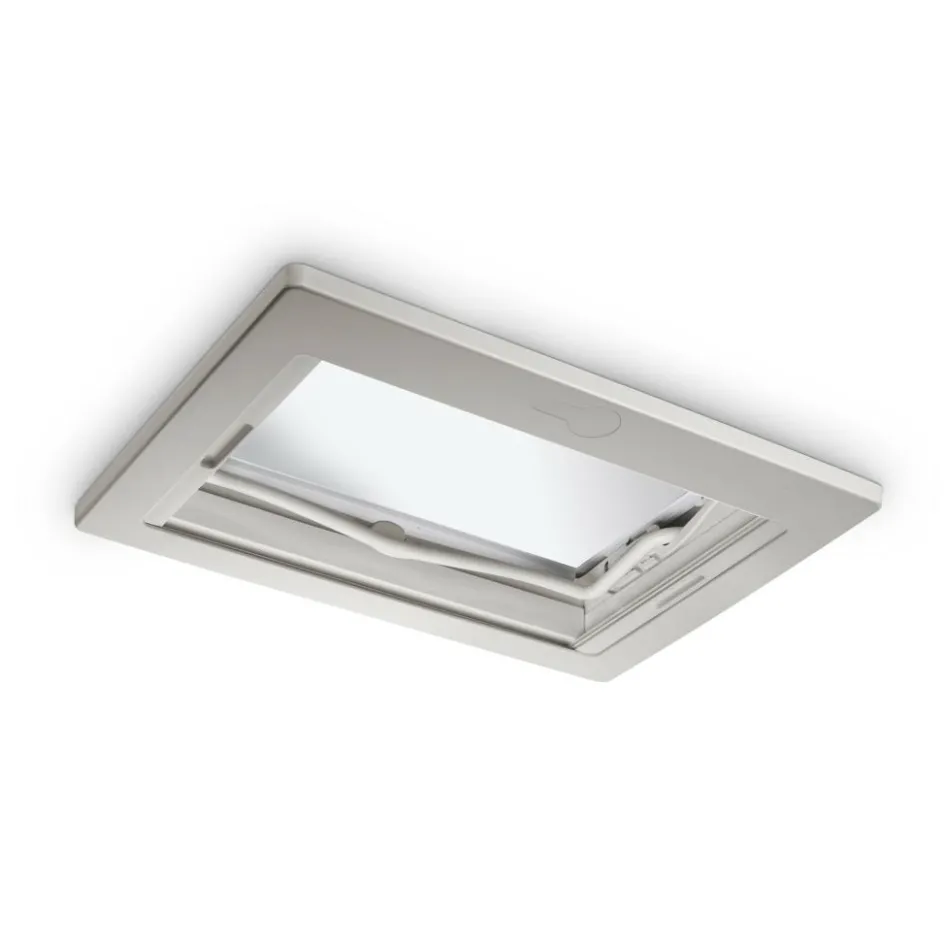 Het Midi Heki dakluik van Dometic is geschikt voor campers en caravans met een gatmaat van 70 x 50 centimeter en brengt volop licht en lucht in uw voertuig. Dit Midi Heki dakluik is voorzien van een afsluitend rubber zodat er geen permanente ventilatie – en ook geen tocht – is als het luik gesloten is. Een dakluik zonder ventilatie kan prettig zijn wanneer het luik boven het slaapgedeelte geplaatst wordt, dit type dakluik wordt dan ook het meest toegepast in campers.