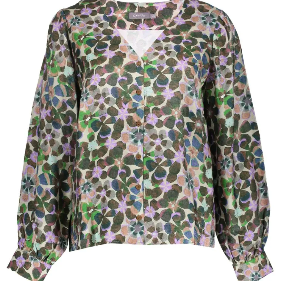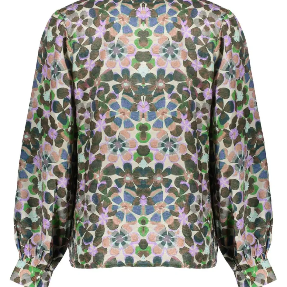 De Geisha blouse heeft een V-hals, ballonmouwen en een sierlijke print, waardoor dit item een unieke en stijlvolle toevoeging is voor uw outfit.