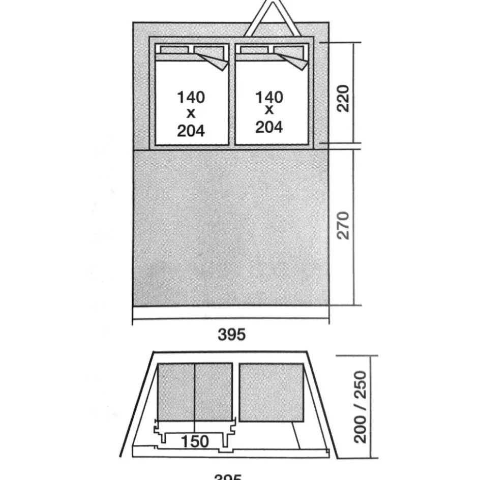 Deze ruime vouwwagen van Jamet is maar liefst 400 bij 495 cm en beschikt over een grote voortent met 2 verandawanden en 2 slaapcabines. De slaapcabines zijn donkerder gemaakt voor meer slaapcomfort en de bedden hebben 2-persoons lattenbodems met stevige schuimmatrassen. Het rechter bed is opklapbaar, waardoor er meer bergruimte vrijkomt. Daarnaast heeft deze vouwwagen een mooie ECO-boogluifel met zijwanden met grote ramen. Deze ramen hebben flappen die opgerold en vastgezet kunnen worden met gespen. Ook zijn deze ramen voorzien van ventilatie.