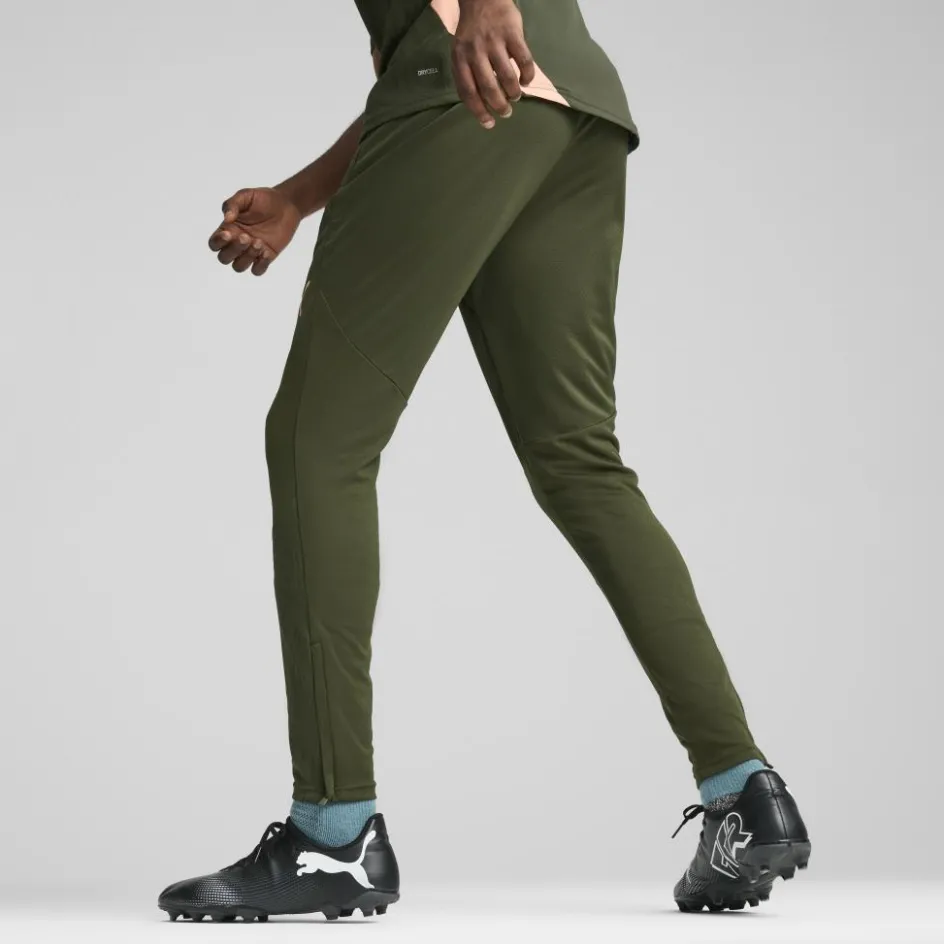 Deze PUMA Manchester City trainingsbroek voor heren heeft ritsen bij de enkels, zodat de broek over de schoen aan getrokken kan worden. Verder zorgt het soepele materiaal en de sneldrogende technologie voor veel frisheid tijdens het trainen.