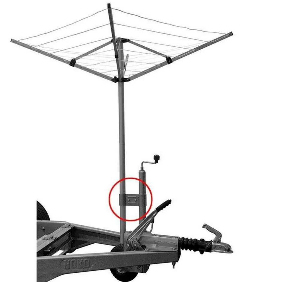 De ProPlus neuswielklem voor droogmolen plaats je op het neuswiel van jouw caravan of vouwwagen om een droogmolen te plaatsen. Ook geschikt als bevestiging voor satellietschotelmast. De klem heeft een diameter van 40 tot 50 millimeter.