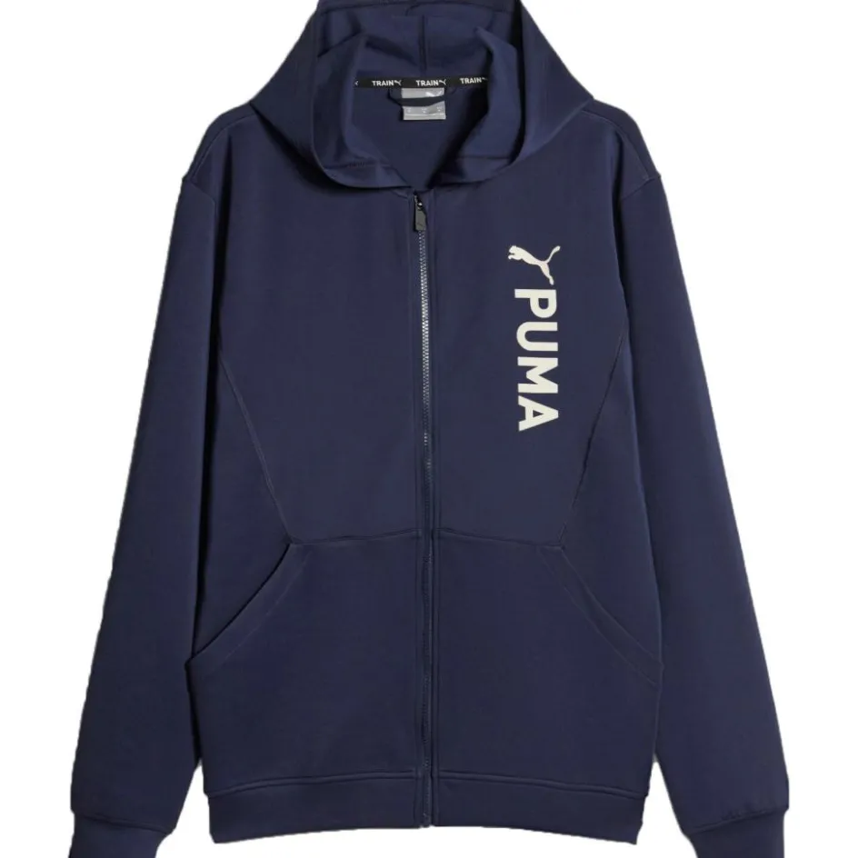De Puma Fit Double Knit trainingsjack voor heren heeft een capuchon en zakken. Dit vest houdt u goed warm en de stof is sneldrogend.