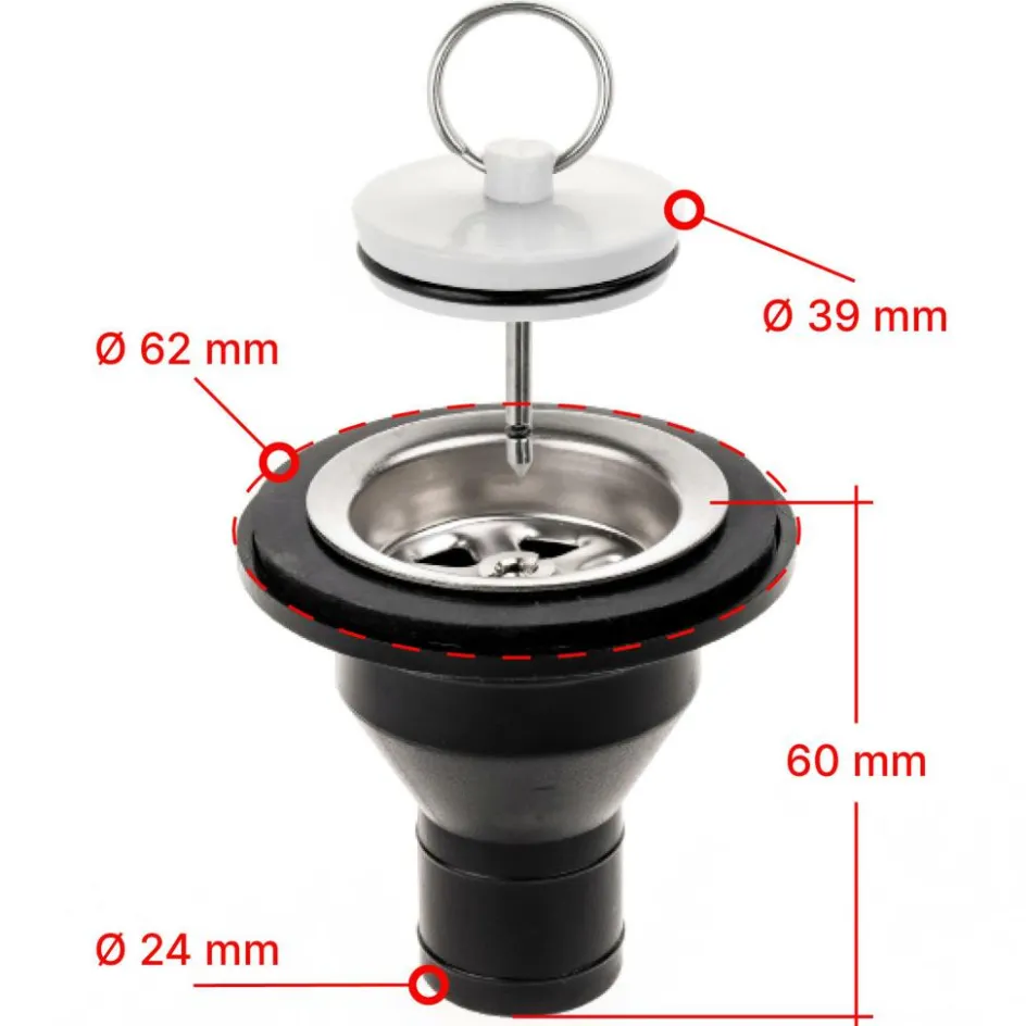 De Reich universele afvoerplug is geschikt voor montage in spoel- en wasbakken. Deze afvoerplug heeft een rechte slangaansluiting met een diameter van 25 mm. De compacte en robuuste afvoerplug wordt standaard geleverd met een afvoerstop en afdichtingsrubber.