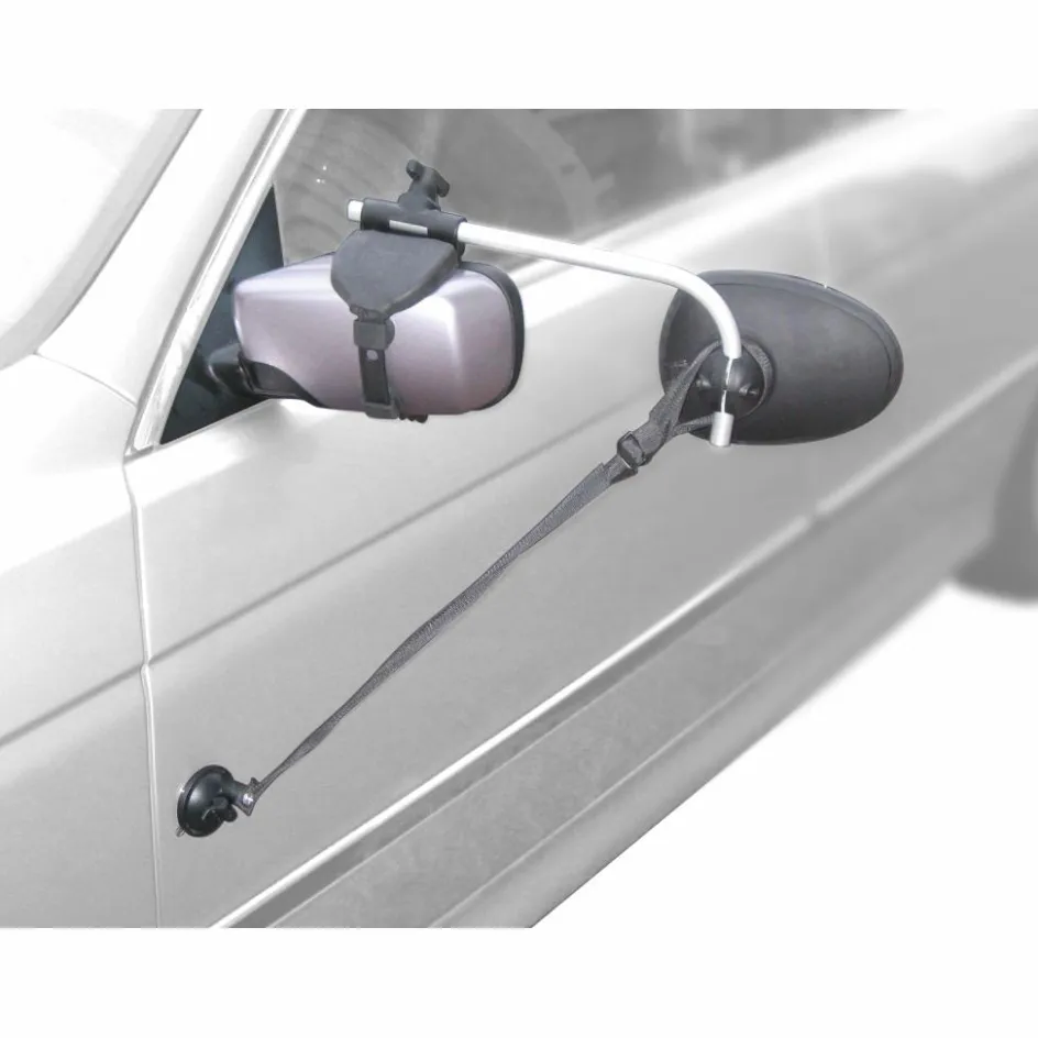 De Davit spanband is de oplossing tegen het terugklappen van de caravanspiegel. Krachtzuiger met flexibele spanband. Reeds jarenlang een betrouwbare en goedkope oplossing voor spiegelproblemen. De Davit voorkomt zeer effectief het terugklappen van de autospiegel, veroorzaakt door vrachtwagens, sterke wind e.d. Tevens onderdrukt de Davit het hinderlijk trillen van de opzetspiegel. Deze constructie van een nieuw type krachtzuiger met een flexibele spanband vormt een betrouwbare oplossing voor spiegelproblemen. Op- en afzetten gaat razendsnel en wordt gedaan met behulp van een hevel.