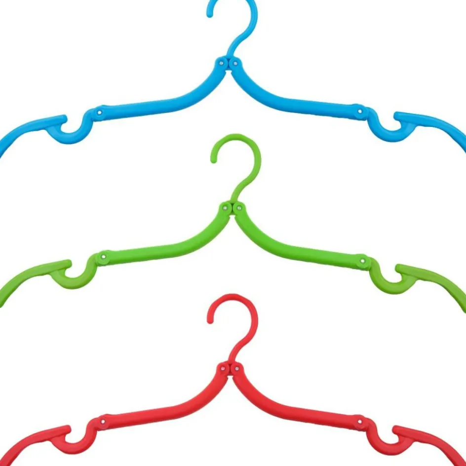 Met de Bat opvouwbare kledinghangers van Rubytec kunt u gemakkelijk uw kleding ophangen zonder dat dit veel ruimte in uw bagage hoeft te kosten. De hangers komen in een set van drie in de kleuren rood, groen en blauw. U kunt de haken op twee verschillende manieren uitklappen.