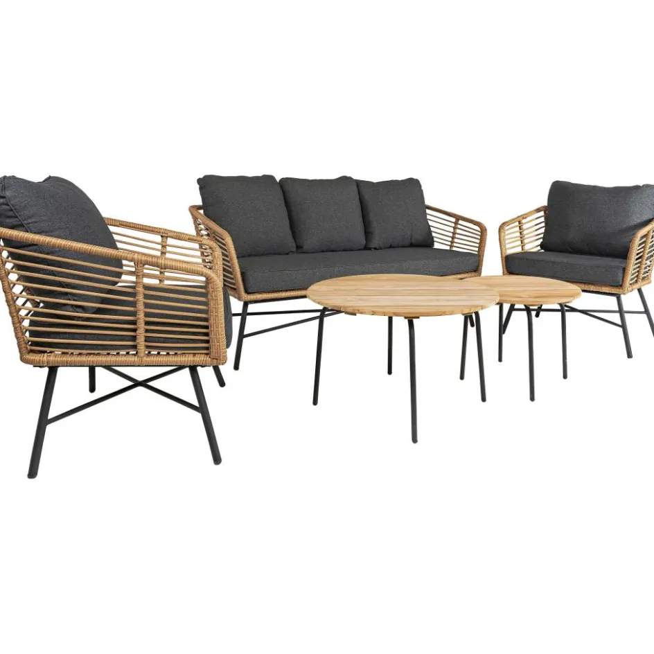 De Bardani Madero loungeset bestaat uit een ruime bank, twee loungestoelen en twee tafeltjes met verschillende afmetingen. De loungeset biedt ruimte aan 4 personen. De bank en de stoelen zitten zeer comfortabel dankzij de dikke en zachte rug- en zitkussens. De moderne afwerking zorgt voor een stijlvolle toevoeging in uw tuin. Daarnaast zijn de tuinmeubels zeer duurzaam dankzij het aluminium frame. De tafeltjes hebben een diameter van 75 en 55 centimeter met een hoogte van 46 en 42 centimeter.