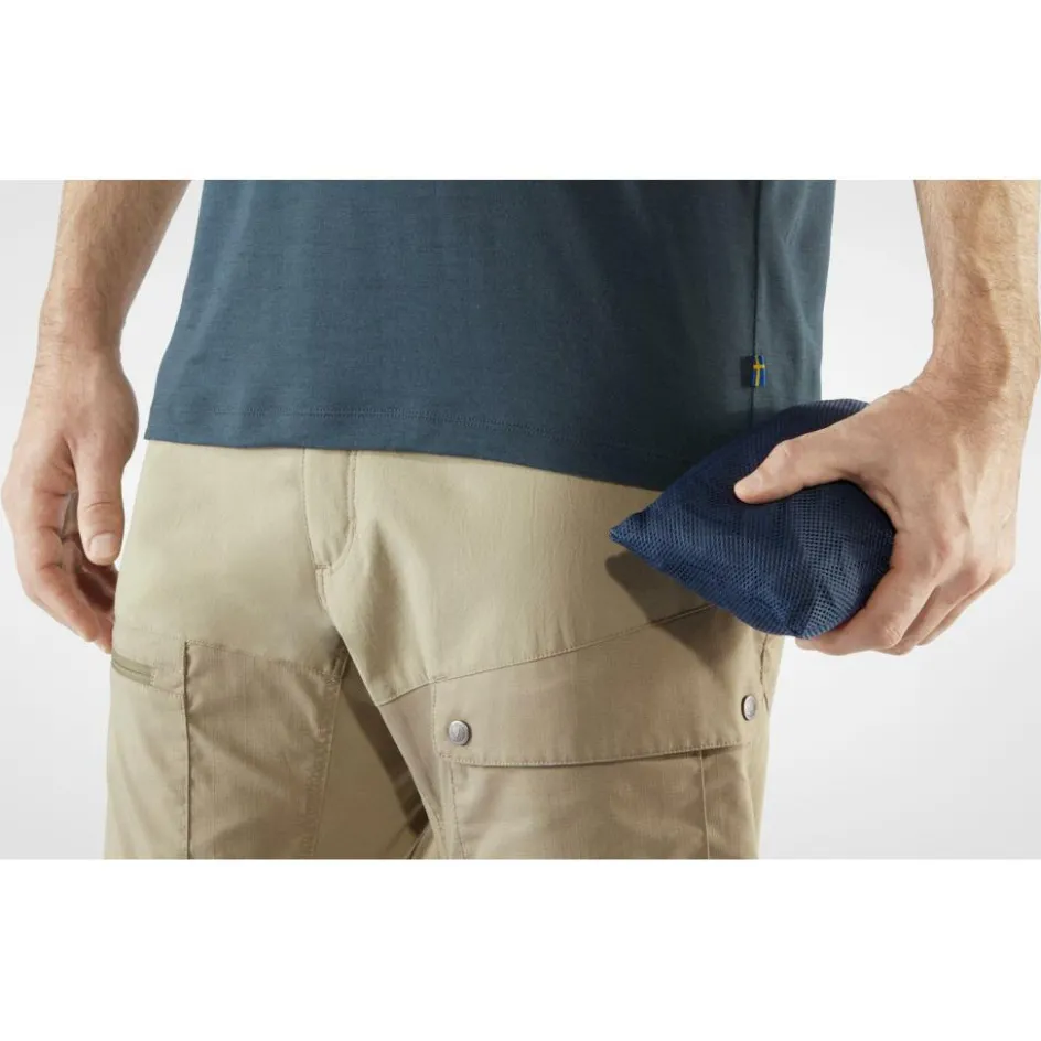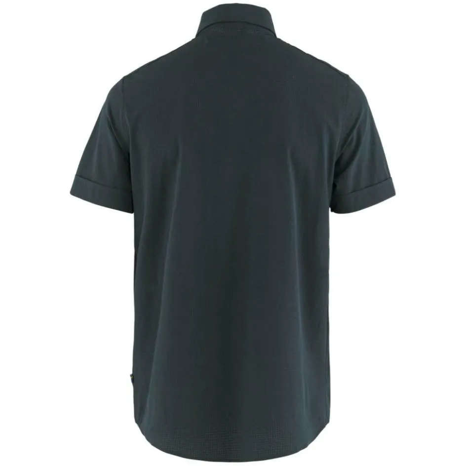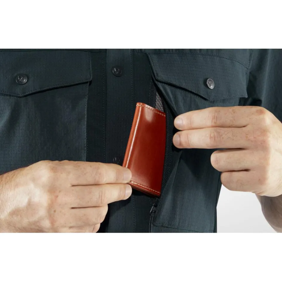 Het Fjällräven Abisko Trekking SS overhemd voor heren is lichtgewicht, sneldrogend, ventileren en gemaakt van stretchmateriaal. Voor dit materiaal is gebruik gemaakt van gerecycled polyester. De borstzakken hebben een klep aan de bovenkant en een rits aan de zijkant. Ze zijn gevoerd met mesh en kunnen ook als ventilatieopening worden gebruikt. Het overhemd kan in zijn geheel worden opgevouwen in een van de borstzakken.
