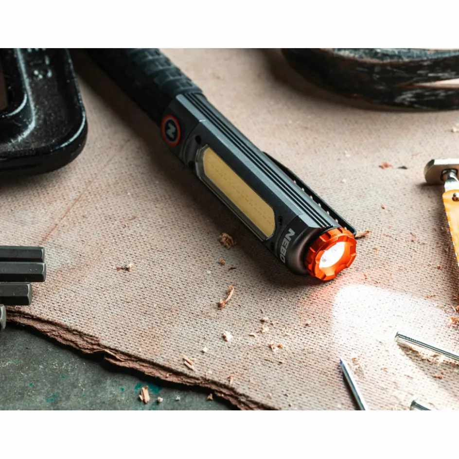 De Nebo Big Larry Pro+ is een stevige, dimbare en oplaadbare werk- en zaklamp. De getextureerde rubberen greep zorgt voor extra grip in alle weersomstandigheden. Deze lamp heeft een C.O.B. led aan de voorkant en een spot LED bovenop. Dankzij C.O.B. technologie stralen talloze kleine LED’s samen als één grote LED-chip, wat resulteert in gelijkmatig helder licht van wel 600 lumen. Aan de achterkant bevindt zich een magneet, waardoor u de lamp moeiteloos aan metalen oppervlakken kunt ophangen. Deze lamp is IPX7 spatwaterdicht, heeft een handige draagclip en wordt geleverd met een USB-kabel.