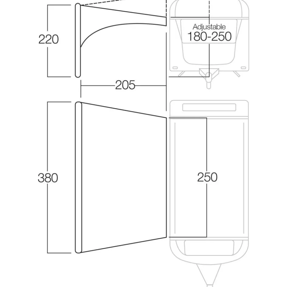 Met Vango Airbeam Sky Canopy caravanluifel kunt u gemakkelijk schaduw creëren voor uw caravan. Deze Vango caravanluifel is makkelijk te monteren door de kador strip. De luifel is voorzien van opblaasbare tubes die u snel kunt opblazen met de bijgeleverde pomp. Deze tubes beschadigen uw caravan niet, aangezien gemaakt zijn van zacht materiaal. Daarnaast is de luifel bruikbaar voor wagens met een aansluithoogte van 180 tot 260 cm.