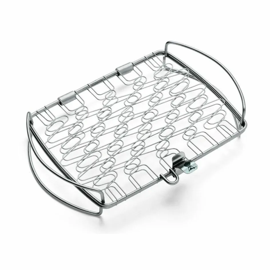De Weber grillkorf large heeft een flexibele draadconstructie waardoor vis en kwetsbare stukken vlees goed op hun plek blijven. Deze grillkorf is gemaakt van RVS en kan in de vaatwasser worden gereinigd. De grillkorf large kan worden gebruikt op de Weber Q300/3000 en grotere gasbarbecue. Ook op de 47 cm en grotere houtskoolbarbecues kan deze vis- en groentebasket worden gebruikt.