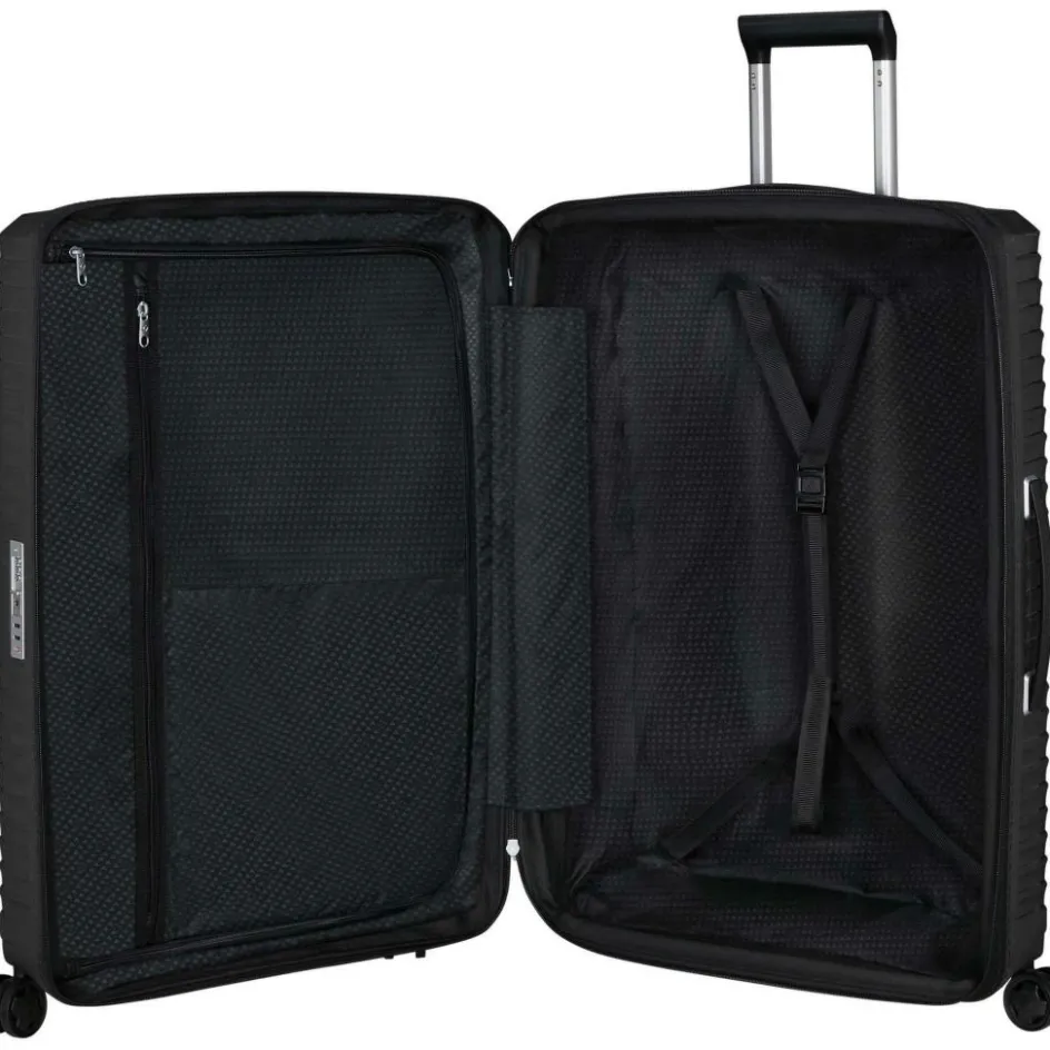 De Samsonite Upscape Spinner koffer biedt optimaal comfort, dankzij het lichte gewicht en de schokabsorberende wieltjes. Verder is de koffer uitbreidbaar en kan de voering worden verwijderd en gewassen.