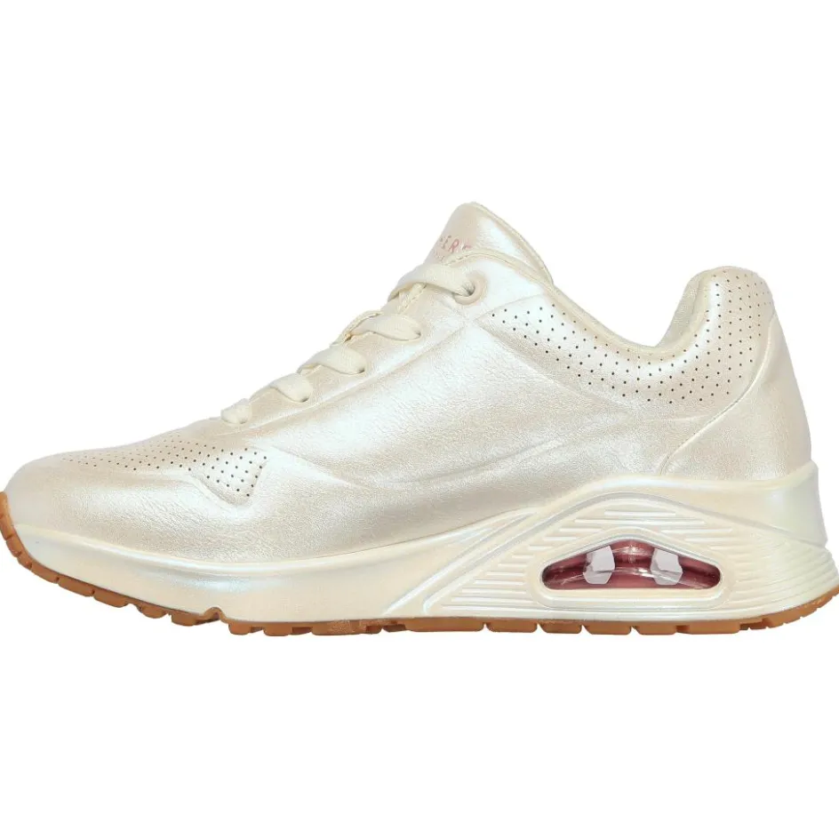 De Skechers Uno – Pearl Queen schoenen voor dames hebben een hele mooie parelmoer finish. Deze Skechers schoenen geven veel demping door de Air Cooled Memory Foam binnenzool en de Skech-Air tussenzool.