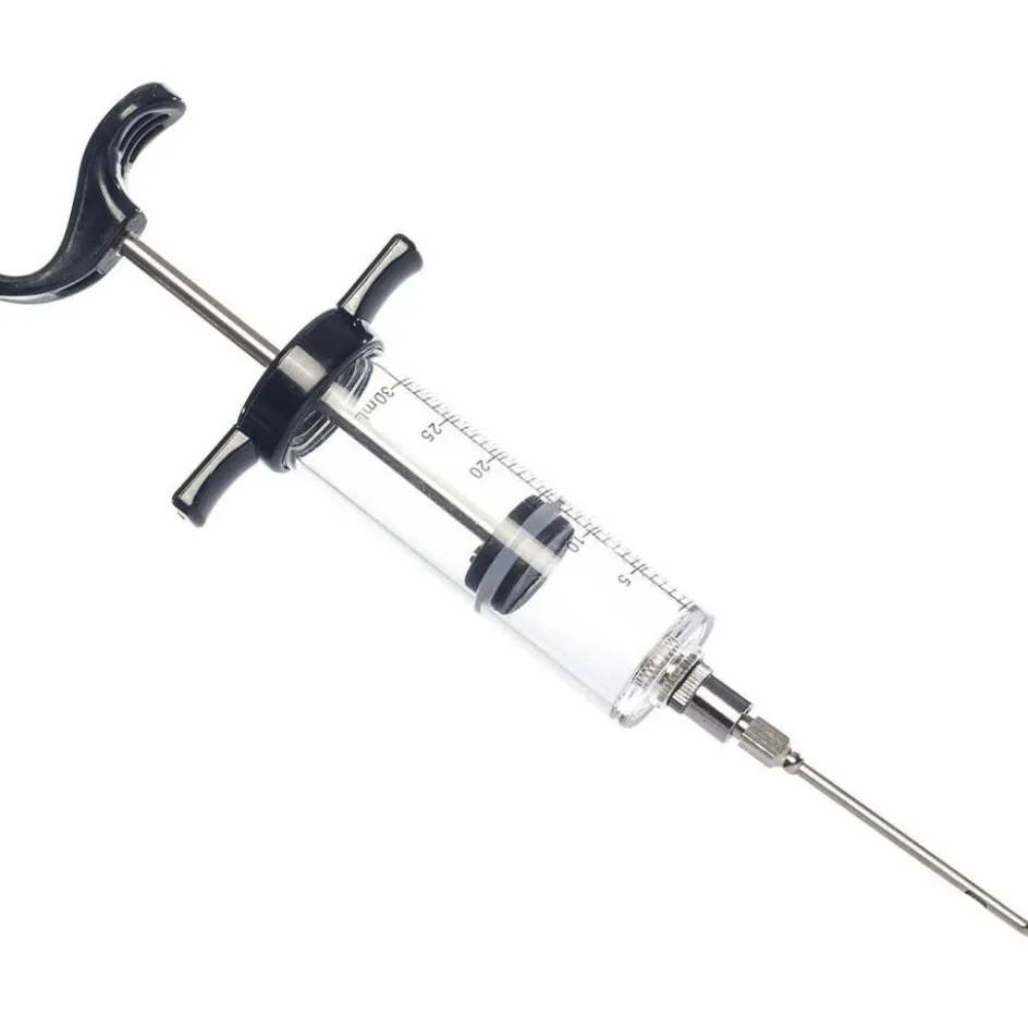 De Smokin’ Flavours marinade injectiespuit vergemakkelijkt het marineren van vlees. U vult simpelweg de spuit met marinade, steekt de naald in het vlees en kunt zo gedoseerd uw vlees marineren. Het mondstuk is van RVS en de spuit kan na gebruik eenvoudig schoon gemaakt worden door deze in de vaatwasser te plaatsen.