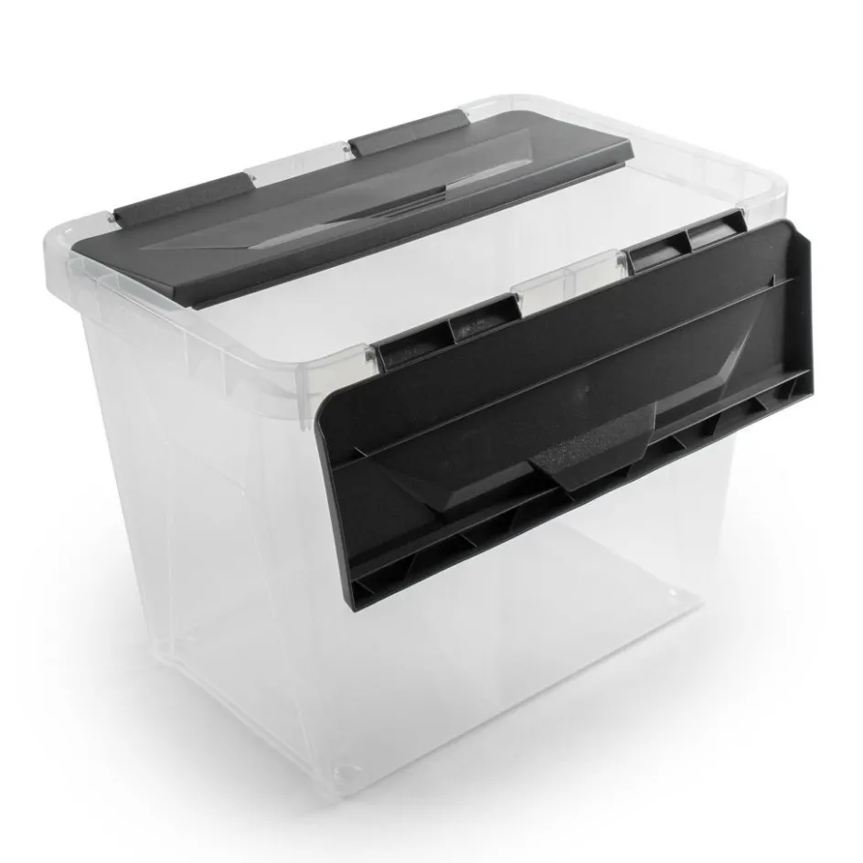 Strak, stevig en klaar voor actie! De Sunware Onyx opbergbox van 15 liter in transparant antraciet houdt uw huis overzichtelijk en netjes.