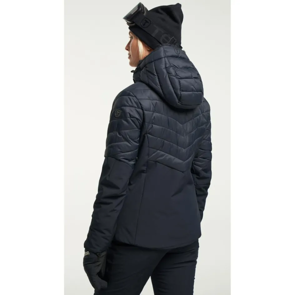 De Tenson Kelly winterjas voor dames is een stijlvolle, geïsoleerde en gewatteerde ski jas die een hoog draagcomfort biedt. De jas heeft een hoog uitgesneden kraag met een geïntegreerde capuchon die extra bescherming biedt tegen de kou. Daarnaast is deze winterjas ook voorzien van een afneembare sneeuwvanger die zorgt dat sneeuw geen kans heeft op binnendringen.