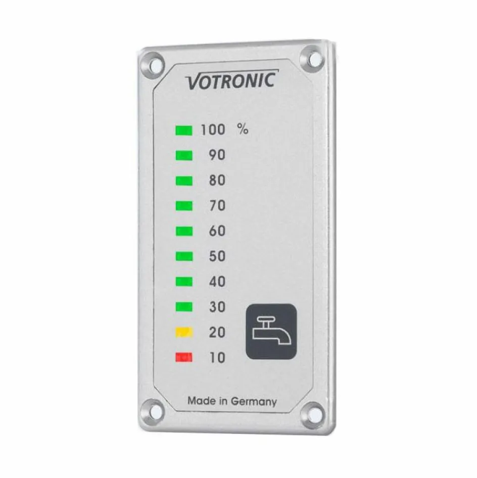 Votronic meetinstrumenten zijn erg nauwkeurig en kunnen aangesloten worden op iedere tank ongeacht afmeting en materiaal. Dit schoonwatertank display geeft in percentages aan hoeveel water er in de tank zit.