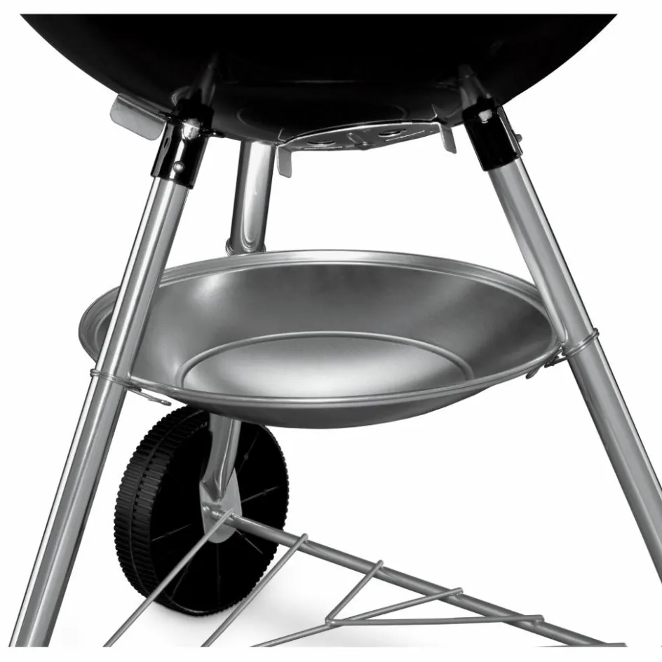 De Weber Bar-B-Kettle houtskoolbarbecue is voorzien van weerbestendige wielen zodat u het makkelijk kunt verplaatsen. De deksel kunt u aan de rand hangen als u het vlees wilt omkeren. De schotel aan de onderzijde zal fijne asdeeltjes voor u opvangen. Met de ventilatieroosters kunt u eenvoudig de temperatuur regelen van de barbecue.