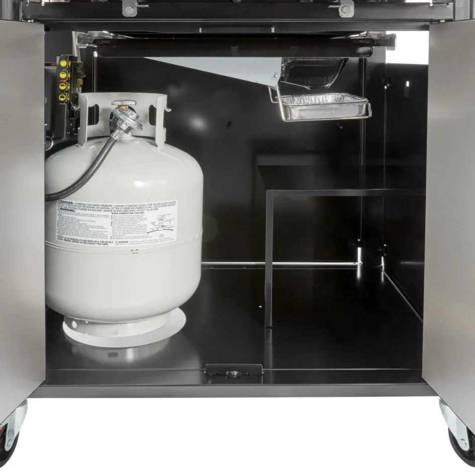 De Genesis EX-335-smart gasbarbecue van Weber heeft een vetopvangsysteem die u gemakkelijk leeg kan schrapen. De barbecue werkt op propaangas, de propaantank kunt u kwijt in het daarvoor bestemde kastje. Hier kunt u ook uw grillware en barbecuegereedschap in kwijt.