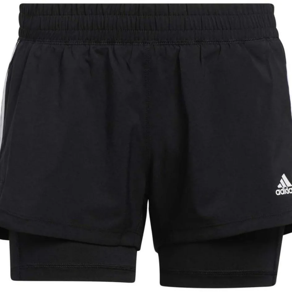 De adidas Pacer 3-Stripes 2-in-1 short voor dames is voorzien van een strak binnenbroekje. Hierdoor biedt de adidas short bedekking bij alle work-outs. De buitenlaag is gemaakt van soepel materiaal, waardoor u er goed in kunt bewegen.