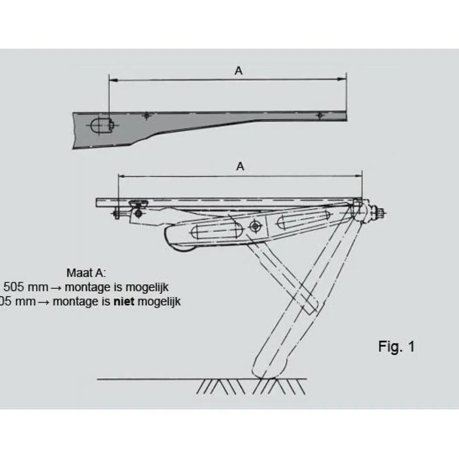 De Al-Ko uitdraaisteunen worden gebruikt om de caravan te stabiliseren zodat deze niet continu beweegt tijdens uw verblijf in de caravan. Door gebruik te maken van de stabiele Al-Ko uitdraaisteunen verhoogt u de stabiliteit nog eens tot 20%. Dankzij de gestanste profielen, gezette zijsteunen en een dikke gerolde spindel met trapeziumdraad zijn de Al-Ko uitdraaisteunen bijzonder stabiel. Alle caravans met een Al-Ko chassis vanaf bouwjaar 1989 kunnen naderhand eenvoudig en snel worden uitgerust met een Al-Ko uitdraaisteun. Voor alle zekerheid dient u echter wel het volgende te controleren: Maat A (zie Fig. 1) moet 505 mm zijn.