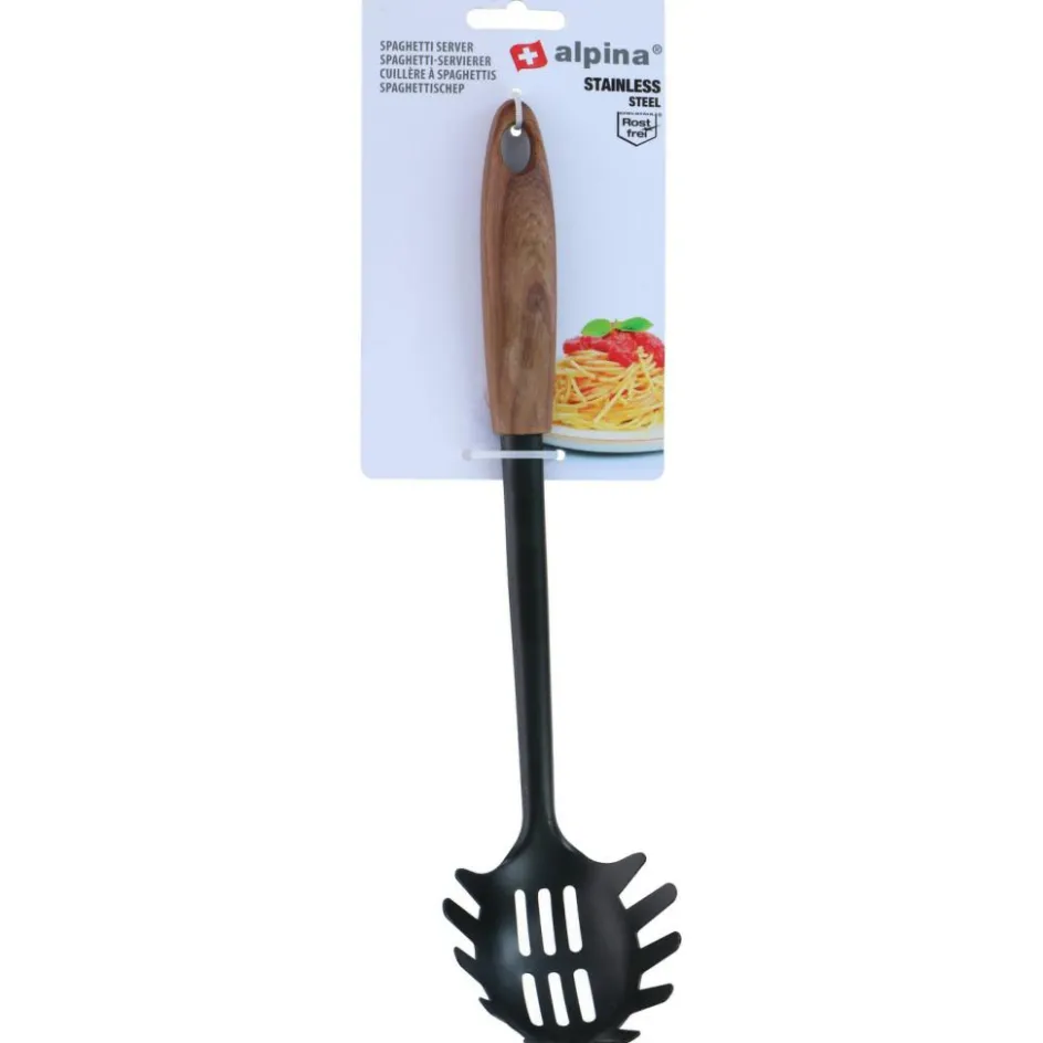 Deze Alpina spaghettilepel in zwart is perfect voor het serveren van spaghetti en andere pasta. Met een ergonomisch ontwerp en gemaakt van stevig materiaal voor dagelijks gebruik.