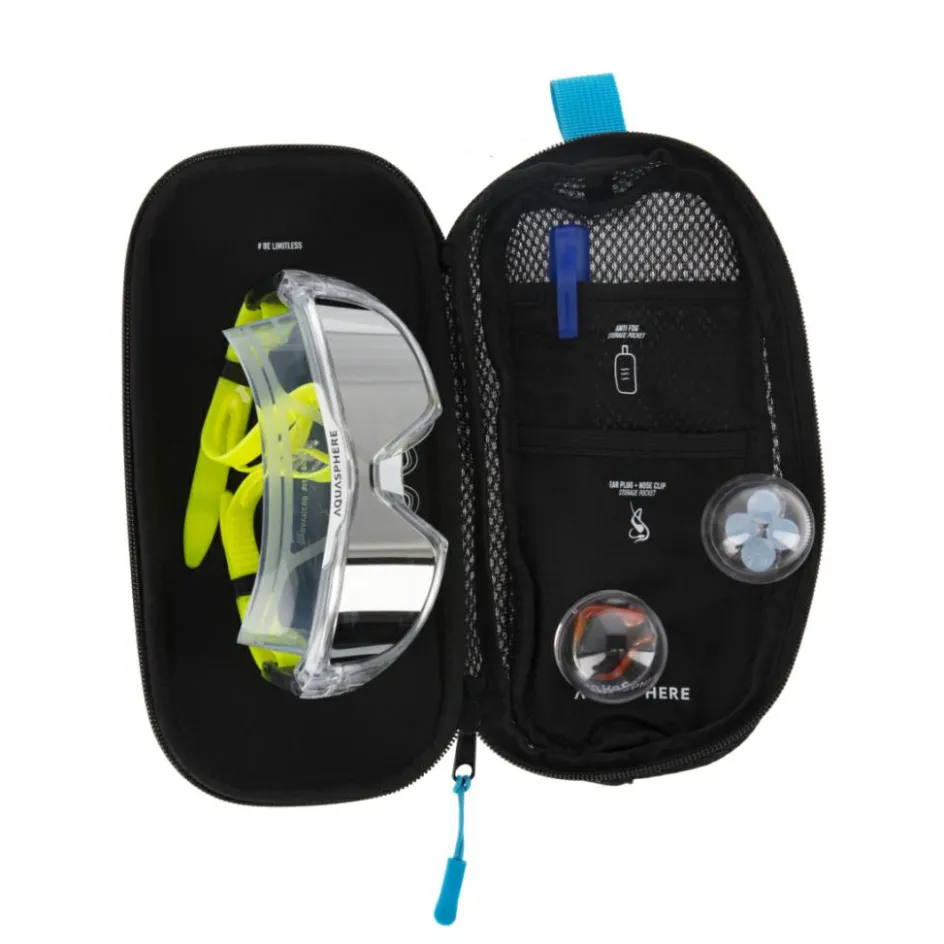 De Aqua Sphere Mask brillenkoker is speciaal voor grotere zwembrillen en duikbrillen en beschikt over aparte vakjes voor uw oordoppen, neusclip en anti-fog spray. Door de mesh binnenkant kan uw zwembril drogen. Daarnaast biedt de harde buitenkant uitstekende bescherming.