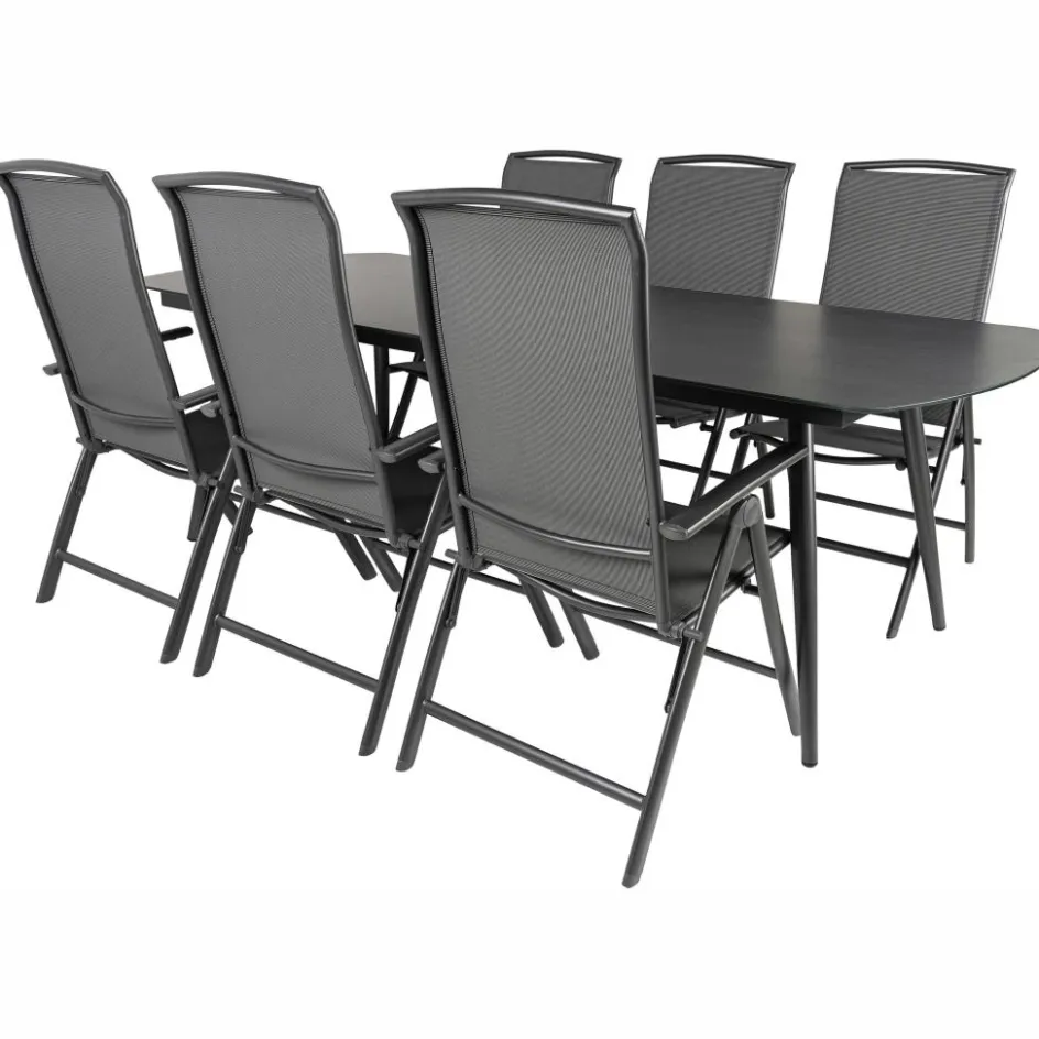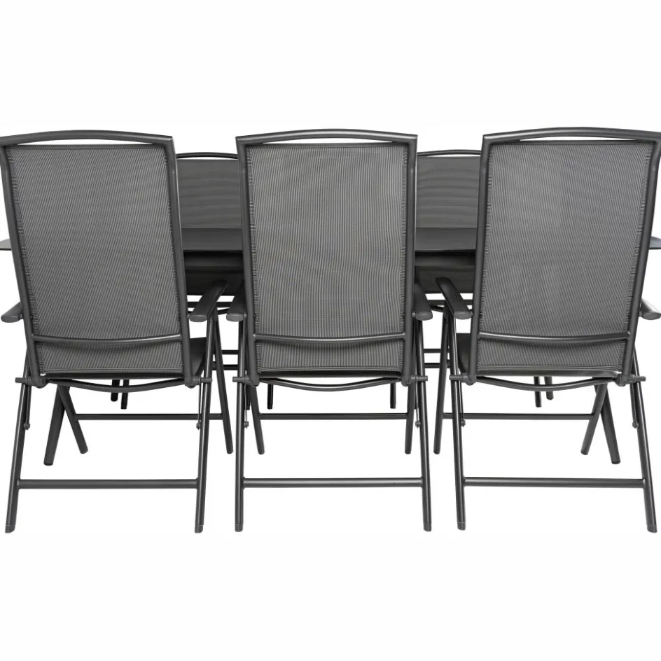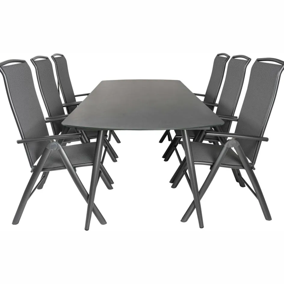 Deze Bardani Olivia 240 x 100 cm Capri 6 tuinset is een onderhoudsvriendelijke set gemaakt van kwalitatief sterke materialen. Deze set bestaat uit een ruime dining tafel en 6 verstelbare tuinstoelen. Beiden hebben een lichtgewicht frame van aluminium, waardoor ze makkelijk te verplaatsen zijn.