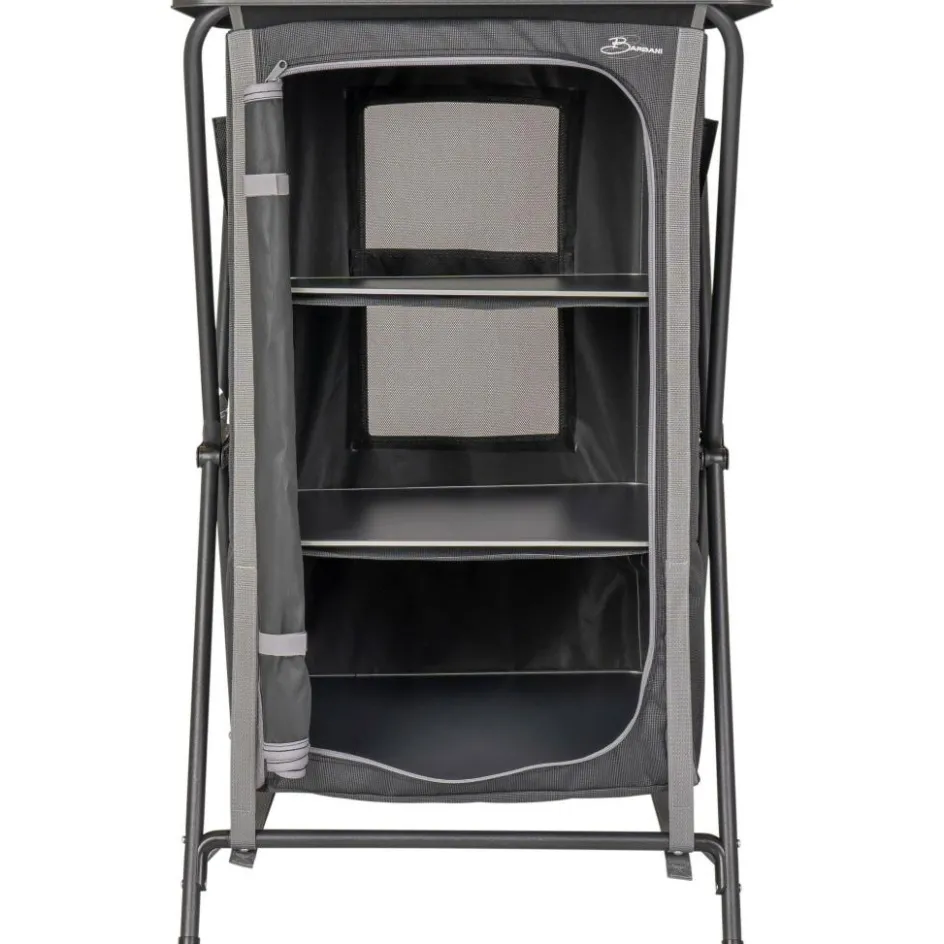 De Bardani Ripiani X3 campingkast biedt u extra opbergplaats op de camping. Deze Bardani campingkast heeft 3 schappen, waarin u uw spullen kunt leggen. De opbergkast is voorzien van een aluminium frame, waardoor deze zeer stevig is. Dankzij het MDF blad kunt u ook spullen bovenop uw kast kwijt. De ritssluiting zorgt ervoor dat de kast ook dichtgeritst kan worden. De kast is inklapbaar en hierdoor gemakkelijk mee te nemen.