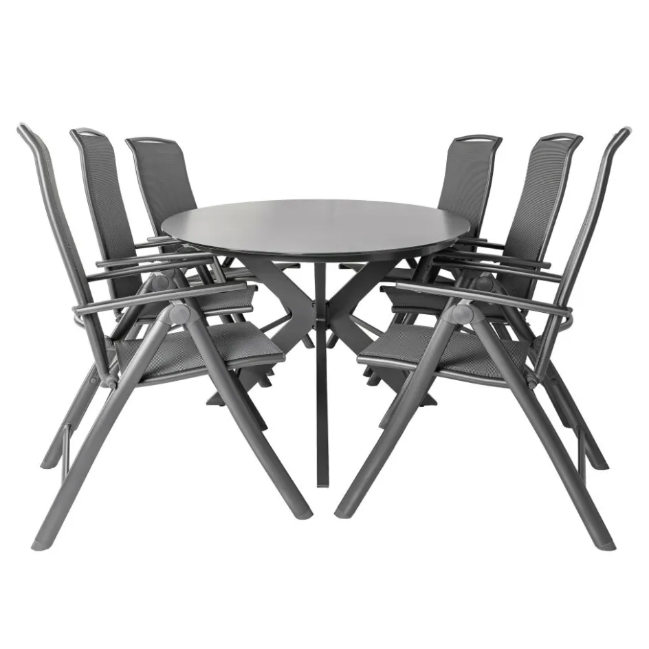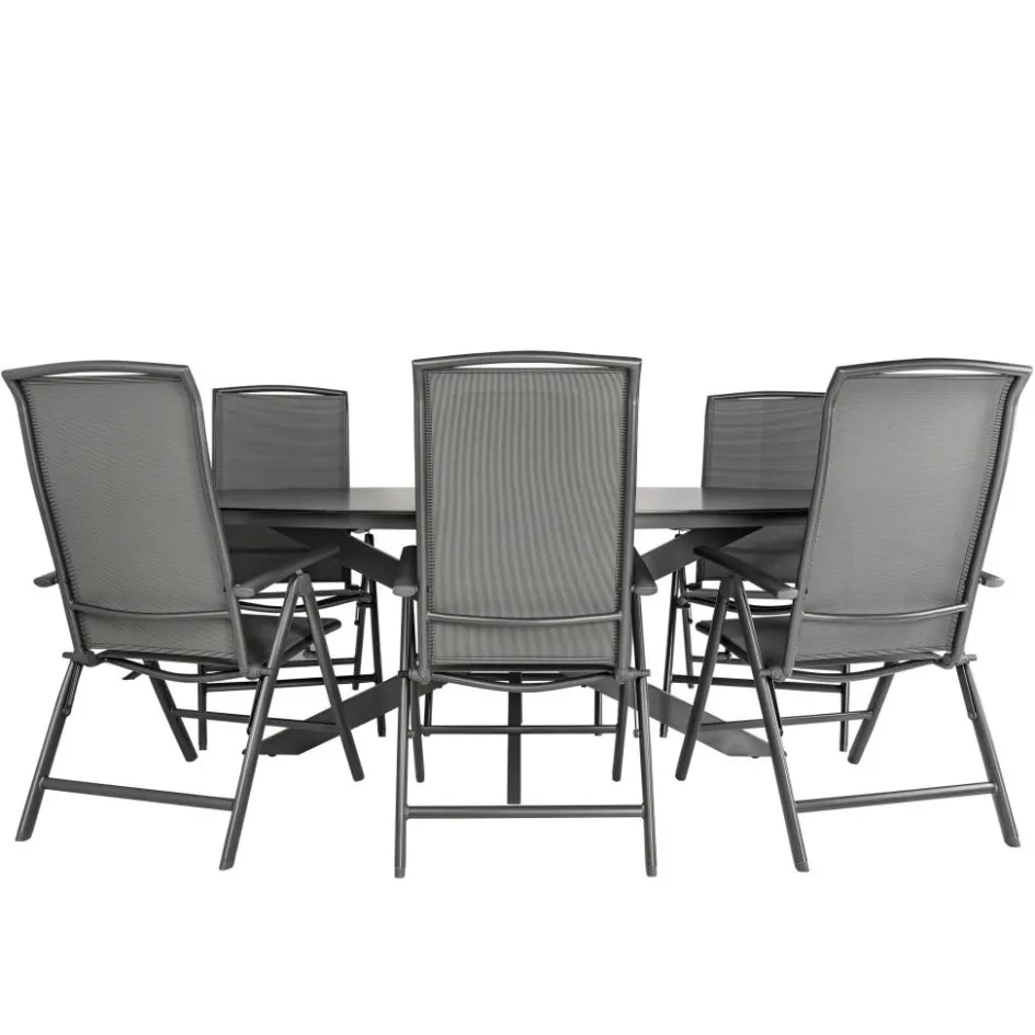 Met de Bardani Varesse 240 x 108 cm Capri 6 tuinset kunt u heerlijk genieten van lange avonden en zonnige lunches. Met de ruime tafel en zes comfortabele stoelen in stijlvol antraciet, brengt u moeiteloos sfeer en gemak naar uw tuin of terras. Genieten van het leven, dat doet u met de Bardani Varesse 240 x 108 cm Capri 6 tuinset.