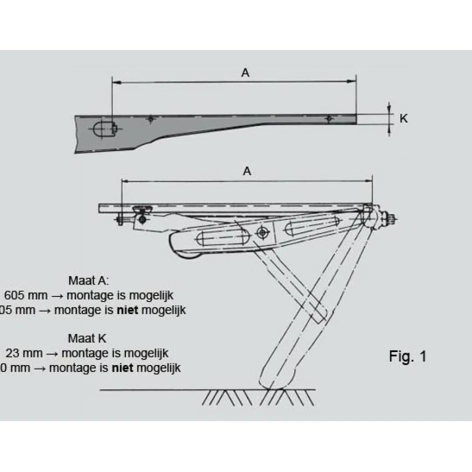 – Maat A (zie Fig. 1) moet 605 mm zijn