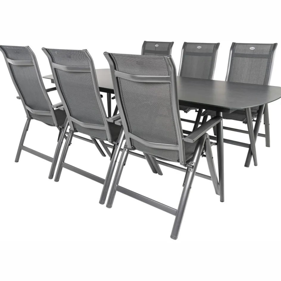 Deze Bardani Olivia 240 x 100 cm Alice 6 tuinset is een ruime set die plaats biedt voor 6 personen en bestaat uit een robuuste tafel en 6 comfortabele tuinstoelen, allemaal gemaakt van hoogwaardige materialen die makkelijk te onderhouden zijn. Hierdoor kunt u lang van uw tuinset genieten. De tuinstoelen zijn verstelbaar.