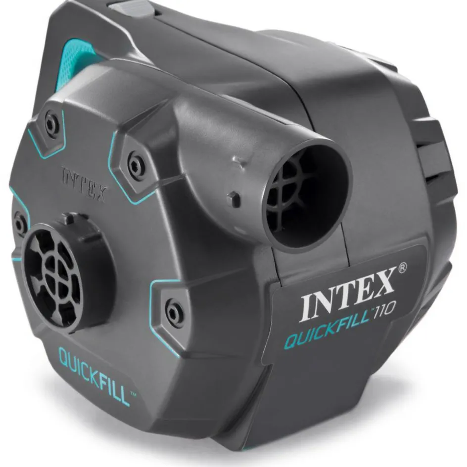 De Intex Quick-Fill AC elektrische luchtpomp heeft 3 mondstukken met slang. De handige pomp heeft 2 functies, het luchtbed oppompen en leegzuigen. De pomp is opnieuw vormgegeven met een handvat.