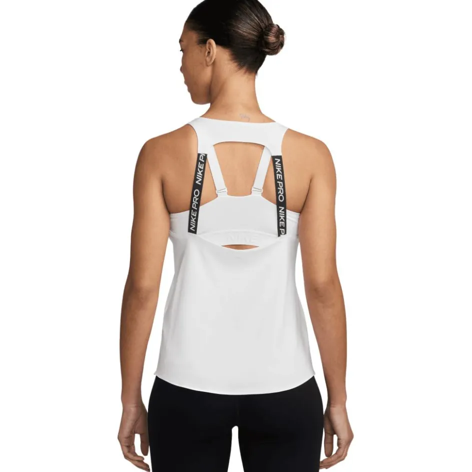 De Nike Pro tanktop is gemaakt van sneldrogend stretchmateriaal, waardoor u tijdens uw training optimale bewegingsvrijheid en een fris, comfortabel gevoel ervaart. Het ontwerp met open rug zorgt voor een aangename ventilatie.