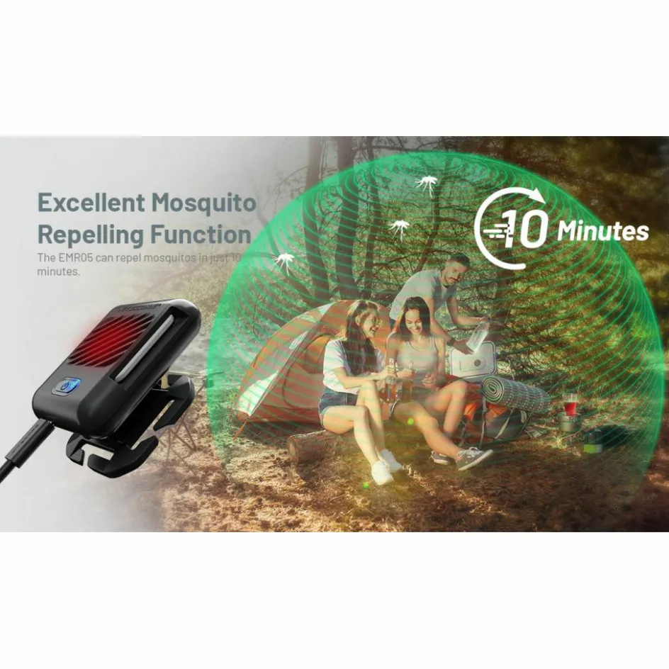 Deze NITECORE EMR05 muggenverjager werkt op het vernieuwde FCB verwarmingssysteem. Dit houdt in dat deze muggenverjager van NITECORE werkt met muggenverjagende matjes die opgewarmd worden en op deze manier muggen afstoten. De matjes werken tot 6 uur lang en deze muggenverjager heeft een bereik van maar liefst 4,9 meter. Vanwege het lichte en compacte ontwerp is deze EMR05 makkelijk mee te nemen en u ontvangt bij deze muggenverjager ook een draagkoord en MOLLE bevestigingssysteem. Verder is dit apparaat waterdicht volgens IPX-5 en is het apparaat bestand tegen een valimpact van 1,5 meter. De muggenverjager werkt alleen in combinatie met een powerbank (niet inbegrepen).