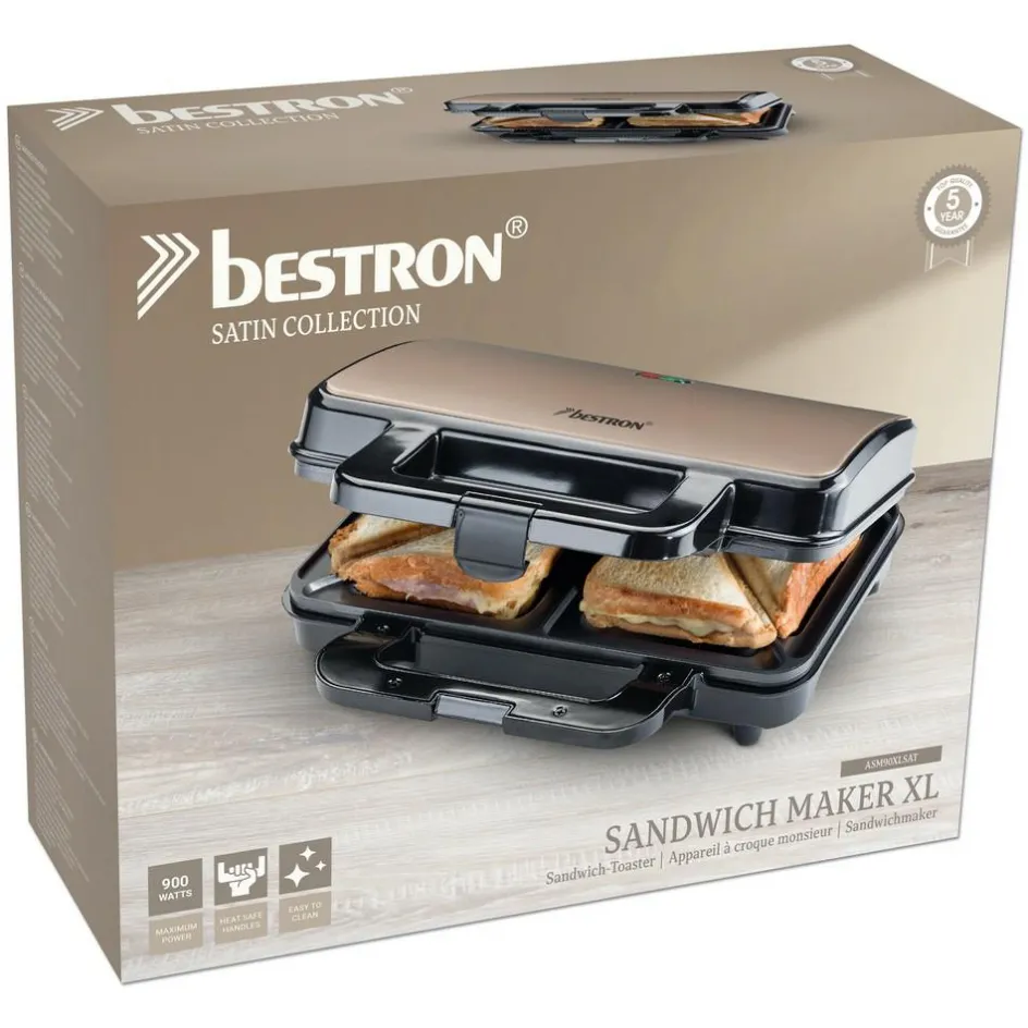 Bestron ASM90XLSAT Sandwichmaker XL tosti ijzer satin