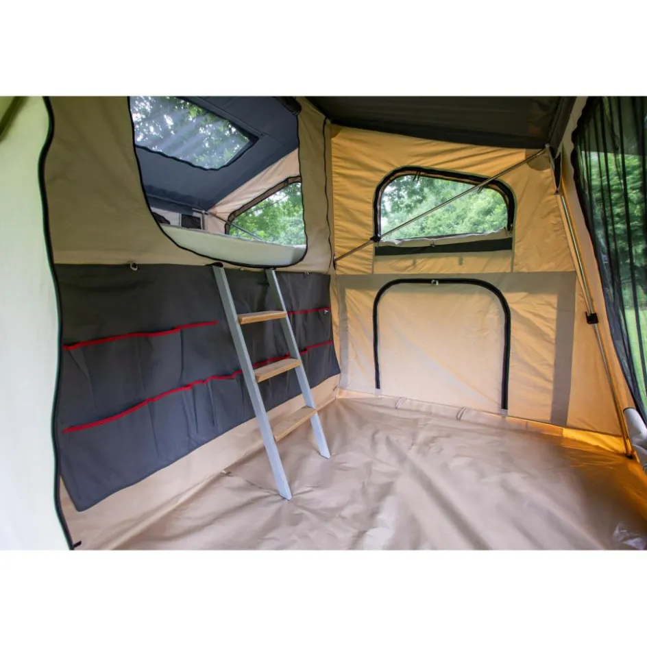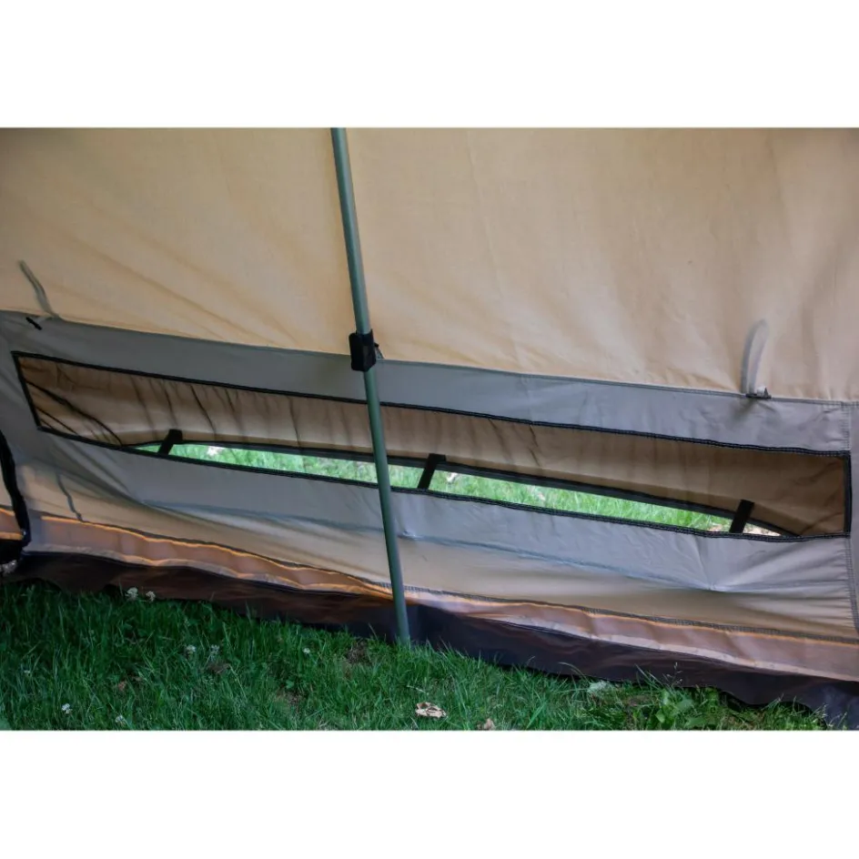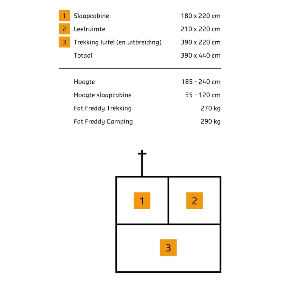 Deze Fat Freddy is standaard voorzien van een trekking luifel van ademend katoen. Met deze luifel kunt u de leefruimte van uw vouwwagentent aanzienlijk vergroten. De stokken van deze luifel zijn gemaakt van stevig aluminium.