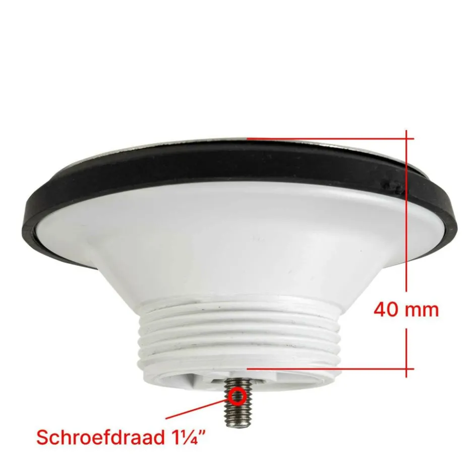 De CAN afvoer met plug is geschikt als een reserve rechte afvoer. Deze afvoer heeft een uitwendige schroefdraad aan de onderzijde van ø1 1/4 inch. Om een slang aan de afvoer te bevestigen heeft u ook een verloop nodig die aansluit op de schroefdraad.