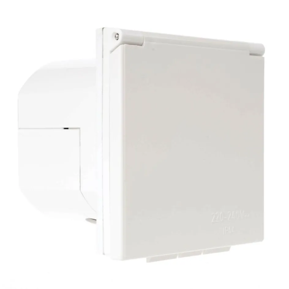 De CEE wandinvoerdoos vierkant in de kleur wit sluit mooi aan bij camper, caravan of boot. De invoerdoos is geschikt voor een CEE stekker en zorgt voor een veilige aansluiting op het stroomnet. De deksel zorgt voor een spatwaterdichte aansluiting die voldoet aan de Europese norm.
