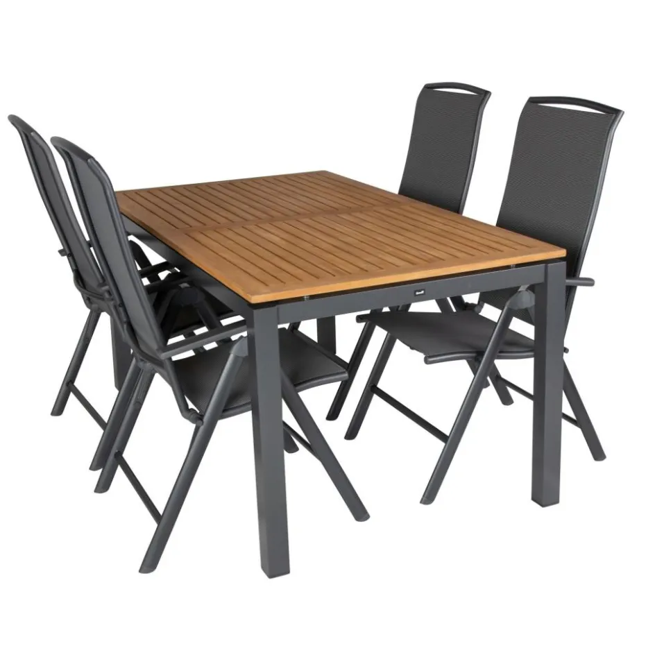 De Hartman Sonata 160 Capri tuinset in de kleur anthracite is voorzien van een 160 cm lange tuintafel. In combinatie met de 4 verstelbare tuinstoelen biedt de Hartman tuinset ruimte aan 4 personen. De kwalitatieve materialen zijn weersbestendig. Daarnaast kunt u de tuinstoelen gemakkelijk inklappen, waardoor deze compact opgeborgen kunnen worden. Het tafelblad is gemaakt van teakhout en het tafelonderstel van aluminium. Deze materialen zijn gemakkelijk schoon te houden.