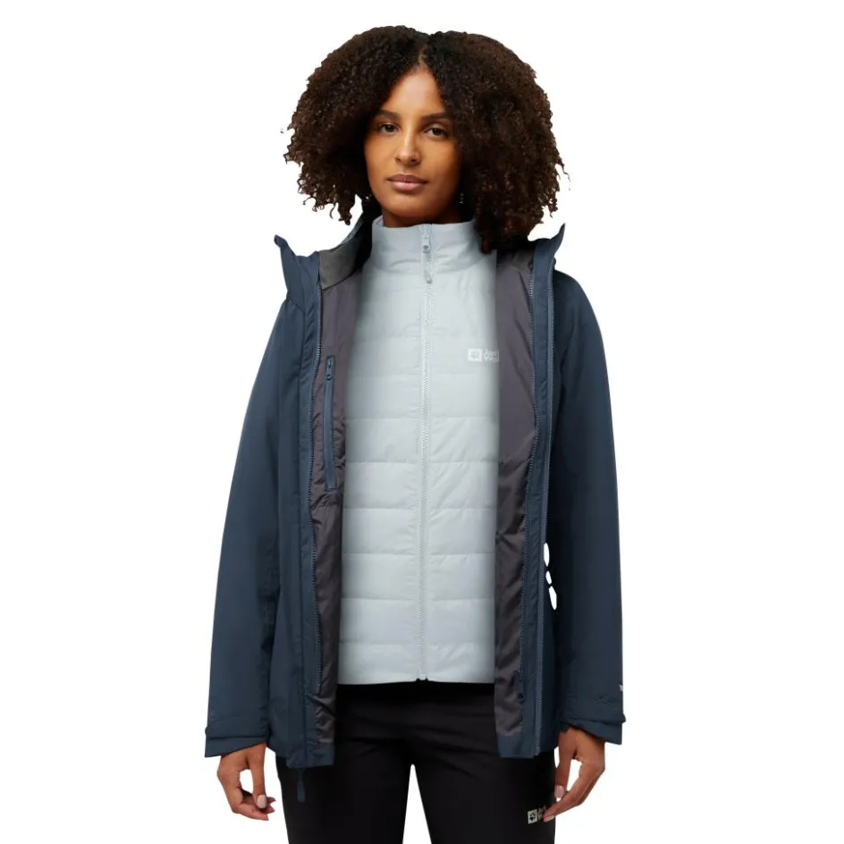 Het Jack Wolfskin Hunberg 3-in-1 outdoor jack voor dames in de kleur Midnight Sky is de ideale keuze voor alle seizoenen. Deze damesjas bestaat uit een waterdichte, ademende buitenjas en een warme isolerende binnenjas die u samen of los kunt dragen afhankelijk van het weer. Ideaal voor wandelingen, stedentrips of outdoor avonturen.
