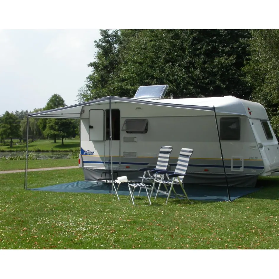 Deze Marvella Dakluifel is gemaakt van hoogwaardig Ten Cate Allseason materiaal en heeft een diepte van 235 cm. Door de dubbele pees zijn de SHS Clips optioneel om erop te zetten, waardoor u niet in de caravanwand hoeft te boren of schroeven. Aan de dakluifel zijn, op de 6 clips, optionele stormbanden te bevestigen, zodat de luifel goed en stevig blijft staan. Aan de achterzijde zijn verstevigingsvlakken, waar eventueel zeilogen in bevestigd kunnen worden. Hierdoor kan dan de dakluifel ook als voortentluifel gebruikt worden. Meet de afstand tussen de punten van de voortent om de juiste penmaat te bepalen.