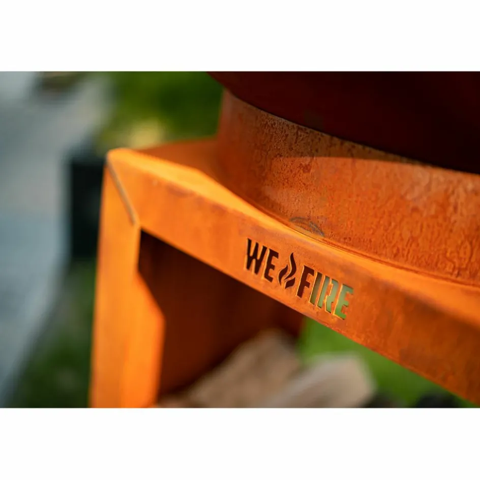 De WE Fire Open Fire Grill barbecue normal is gemaakt van cortenstaal voor een strak en stijlvol design. De barbecue werkt op hout dat in de vuurschaal kan worden geplaatst via de opening in het midden. Rondom de opening bevindt zich het grilloppervlak waarop het eten kan worden gegrild. Het model wordt geleverd in een inox – blank cortenstaal uitvoering. Naarmate u deze barbecue gebruikt, krijgt deze langzamerhand een roestkleur. De stalen bakplaat heeft een rand van 19 centimeter breed. Op het gat van 25 centimeter in het midden kan een extra grillrooster van 31 centimeter worden gezet.